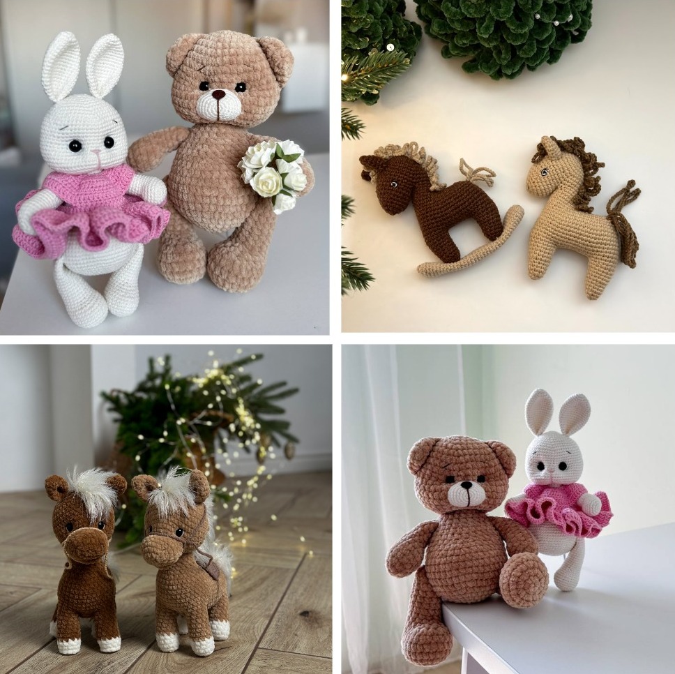 Узнайте все секреты амигуруми от мастера: как сделать выразительные, живые мордочки, крепить фурнитуру, выбирать оптимально пряжу. Результат программы — 4 игрушки: медвежонок, зайчик и символ 2026 года – лошади, которые можно связать в нескольких вариантах