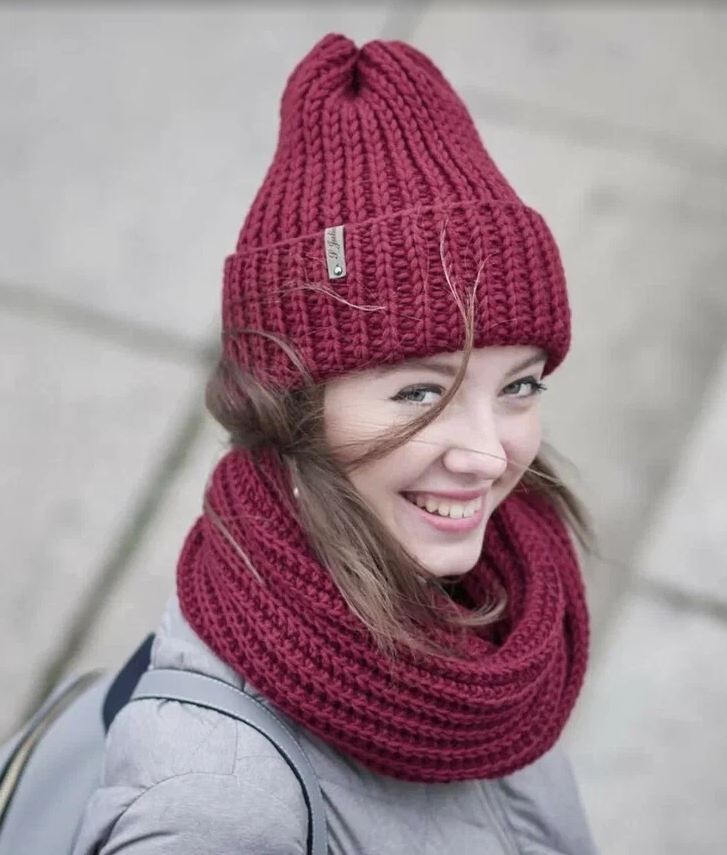 - Как капюшон — широкий снуд накидывают на голову для защиты от ветра
