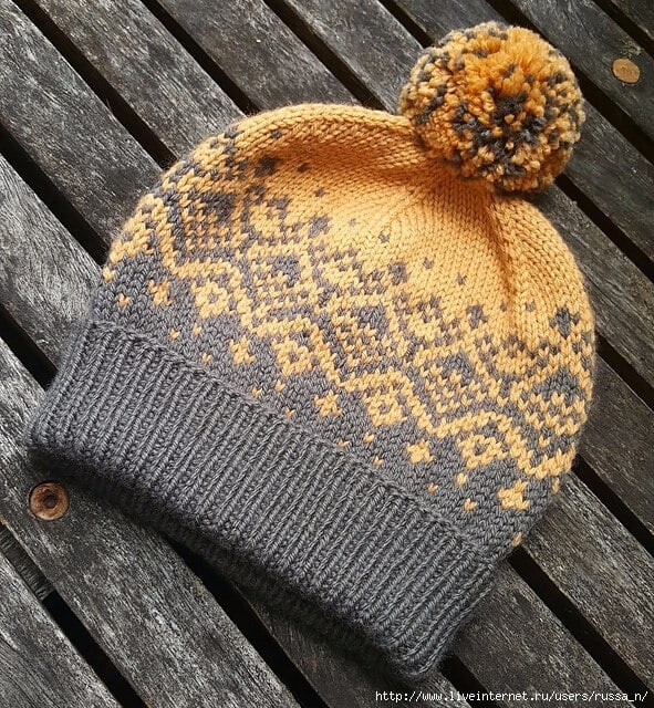 Шапка вяжется вкруговую на круговых/чулочных спицах.