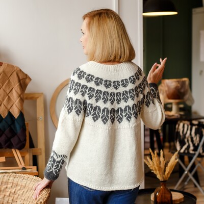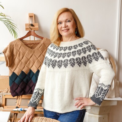 Итог курса: свяжете стильный, тёплый норвежский свитер с жаккардом на круглой кокетке и получите ценный опыт, который будете применять и в других изделиях