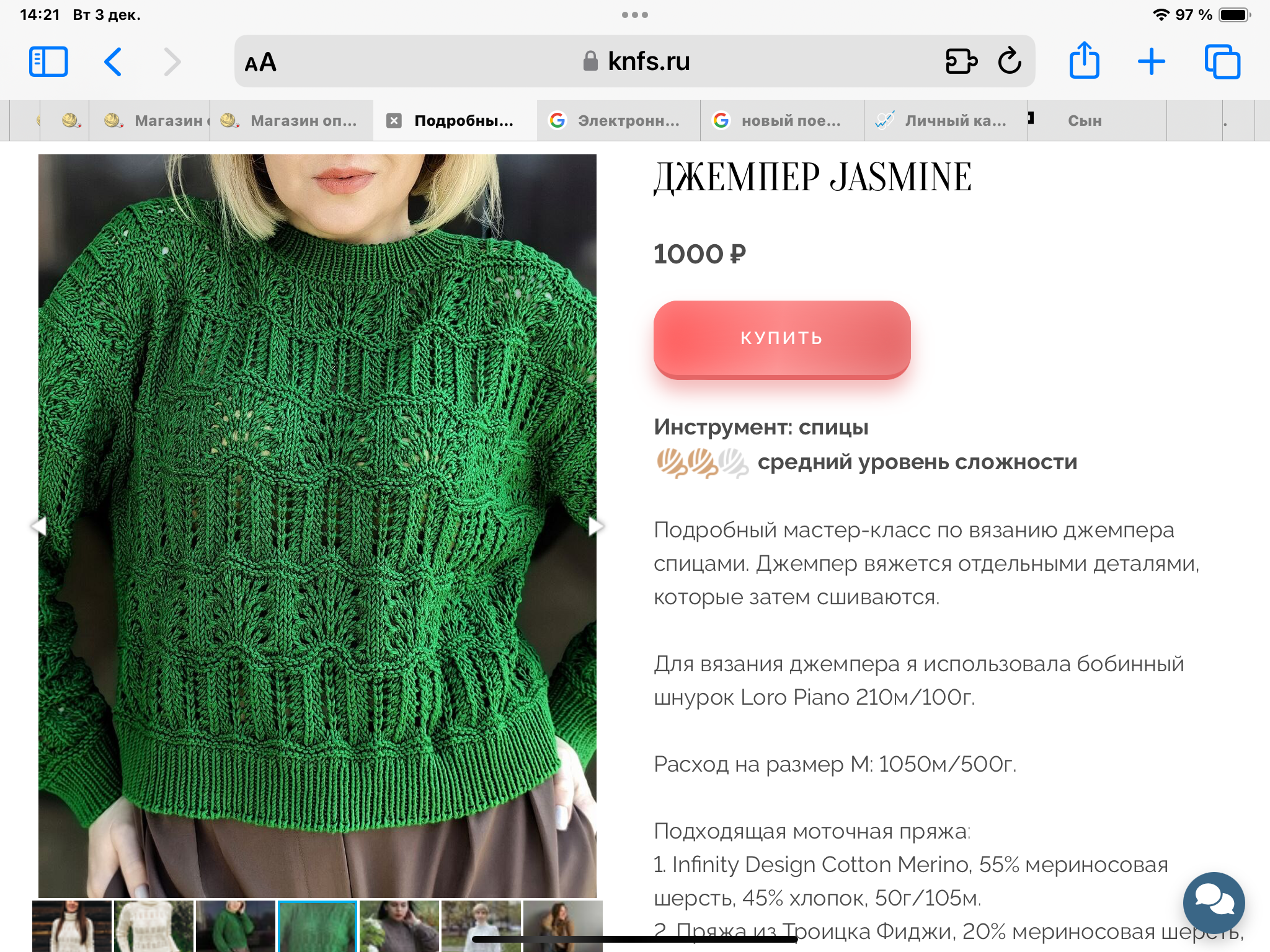 Для вязания джемпера я использовала бобинный шнурок Loro Piano 210м/100г.